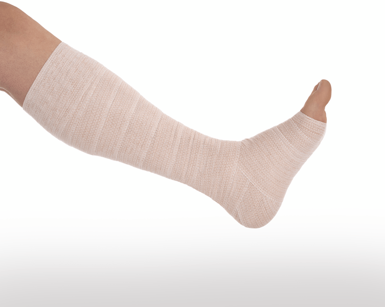 Die 3-in-1 Kurzzugbinde mit Hautkontakt-, Polsterschicht- und Kompressionslage